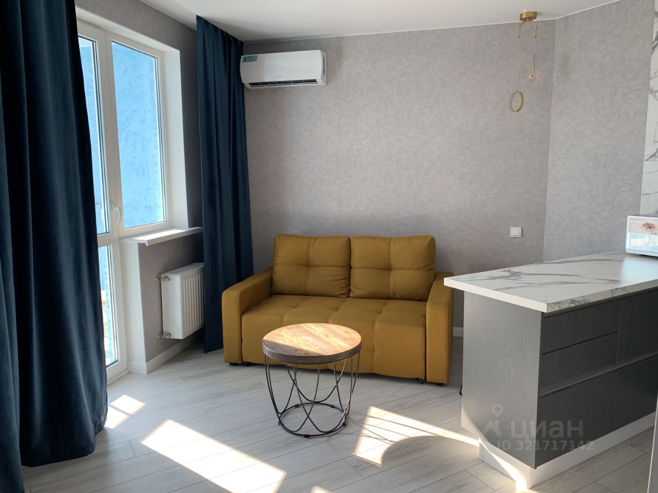 В квартире сделан качественный евроремонт, есть все необходимое для комфортного проживания. На кухне и в комнате установлена современная мебель. В наличии вся необходимая техника: кондиционер, холодильник, телевизор и стиральная машина. Санузел совмещенный, оборудован душевой кабиной. Из окон открывается вид как на улицу, так и во двор, а также имеются две лоджии, где можно наслаждаться свежим воздухом и панорамными видами.