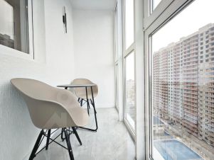 В центре южного района, большая и новая однокомнатная квартира с балконом на 17 этаже