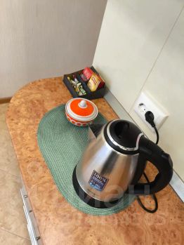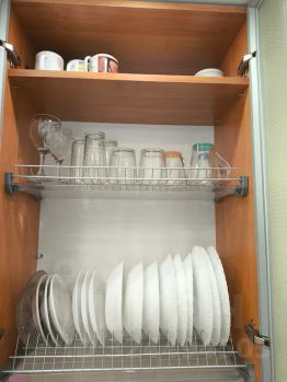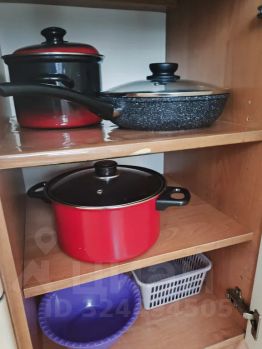 Полностью экипированная кухня: встроенная кухня оснащена необходимой техникой: холодильник, микроволновка, чайник. А также полный набор посуды: кастрюли, сковородка, столовые приборы, тарелки, пиалы, салатники и др. Захотите приготовить завтрак — всё будет под рукой!