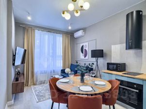 Квартира в новом современном ЖК бизнес-класса с дизайнерским ремонтом. Полностью укомплектована для комфортного отдыха. 4 спальных места. Бесперебойная подача воды. Южный район города. 15 минут пешком до пляжа в Алексино.
