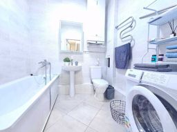 -Удобная кухонная зона со всеми удобствами. Оборудованная посудой и техникой кухня, где есть варочная панель, духовой шкаф, холодильник, СВЧ, чайник.