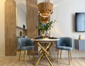 В квартире с подключенной системой умный дом ( Алиса, музыка, теплые полы, шторы, свет, отопление, кондиционер все все управляется голосом) есть все от wi-fi, проводов для зарядки, средств личной гигиены, декоративных свечей, утюга и фена, до собственной гардеробной комнаты! Все продумано для вашего комфортного пребывания . Кухня вся оснащена полным инвентарем для готовки : тостер , миксер , сковородки кастрюли, салатницы, бокалы под вино, шампанское, под пиво, есть все для красивого отдыха. Есть просторный балкон с шикарным видом с 18 этажа где открывается вид на Новоросийск, с шикарными закатами и морем.
