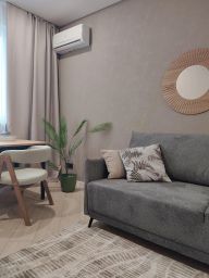 Квартира оборудована необходимым для комфортного проживания: сплит-система, ТВ, бытовая техника, посудомоечная машина.