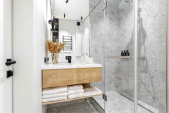 душ, стиральная и сушильная машина, полотенца, шампунь, мыло, фен, утюг, гладильная доска, теплые полы.