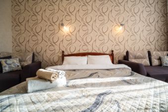 Размещение: до 4 человек (двуспальная кровать + диван).