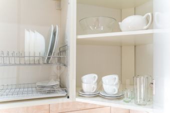 Кухня: вся необходимая техника (холодильник, плита, микроволновка, чайник, духовка) и посуда.