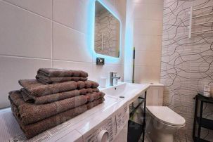 -Ванная комната встретит вас полным набором полотенец,