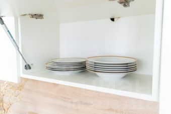 Кухня: вся необходимая техника (холодильник, плита, микроволновка, чайник) и посуда.