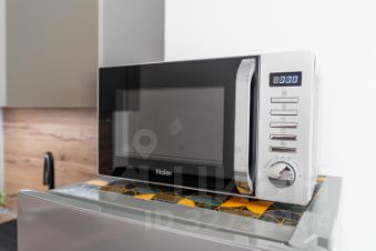 Кухня: вся необходимая техника (холодильник, плита, микроволновка, чайник) и посуда.