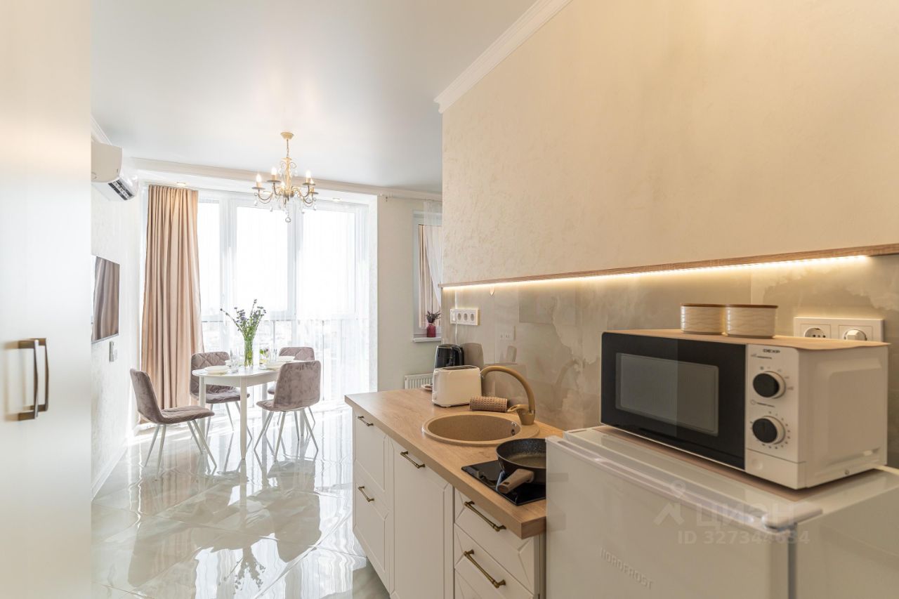 Сдаётся уютная квартира-студия в Новороссийске с великолепным видом на город и море.