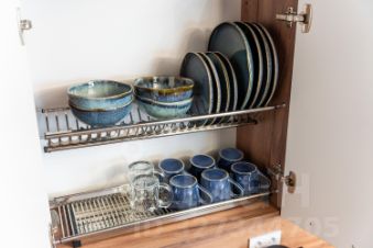 Кухня: вся необходимая техника (холодильник, плита, микроволновка, чайник духовка,) и посуда.