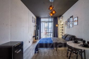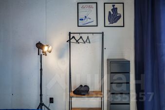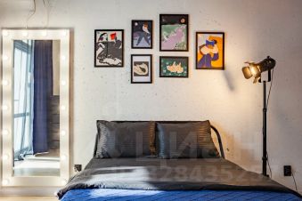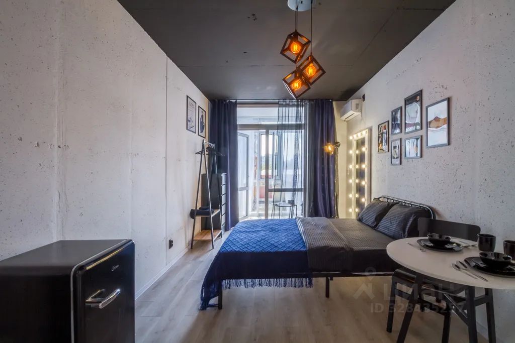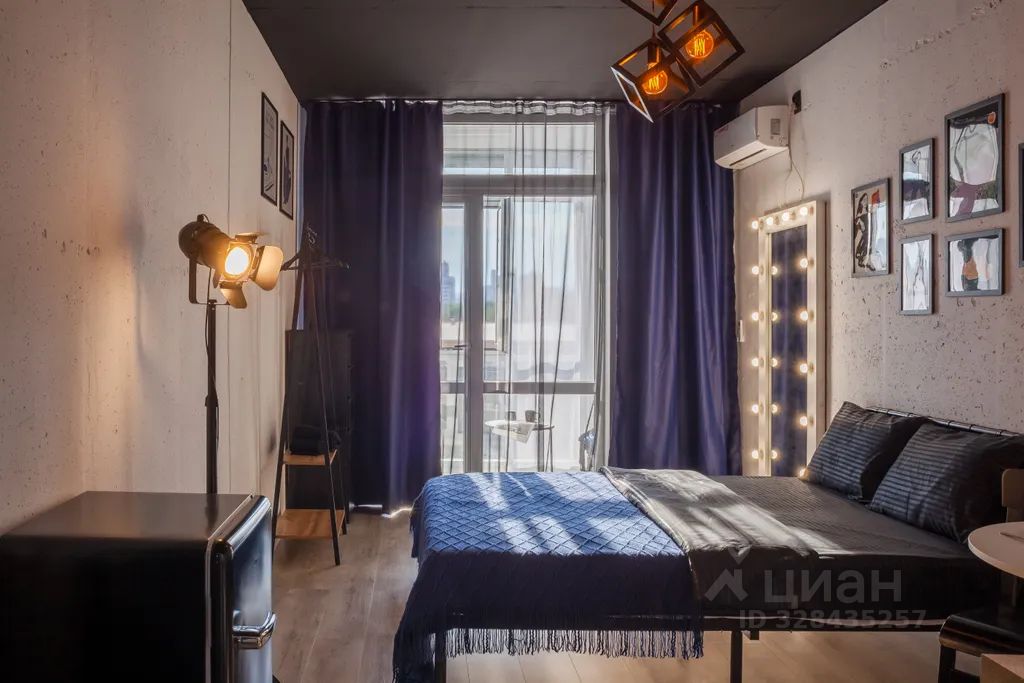 В квартире: витражные окна и качели, кухонная зона, одна двуспальная кровать . Сан узел свой, но в общем коридоре.