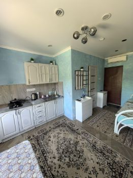 Номер - студио находится в Центральном районе г. Новороссийск в Гостевом доме "На Прямой" в отдельно стоящем здании. В номере свои ванная комната, кухня с необходимой техникой и посудой. Wi-Fi с хорошей скоростью. На территории есть мангал. До моря 850 метров, пляж Нептун, рядом пляж Кристалл. Рядом с Гостевым домом несколько продуктовых магазинов, остановки, столовая.