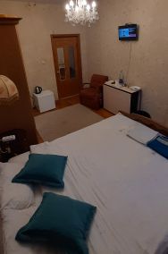 . В номере свой холодильник, чайник, тарелки, кружки. Ванная комната на 1-м этаже на 3 двухместных номера. Сам номер расположен на 2- этаже. Кухня отдельно на несколько номеров. В доме чисто и уютно. Вся кухонная техника имеется, стиральная машинка тоже. Вода горячая и холодная целый день. Номер закрывается на ключ.