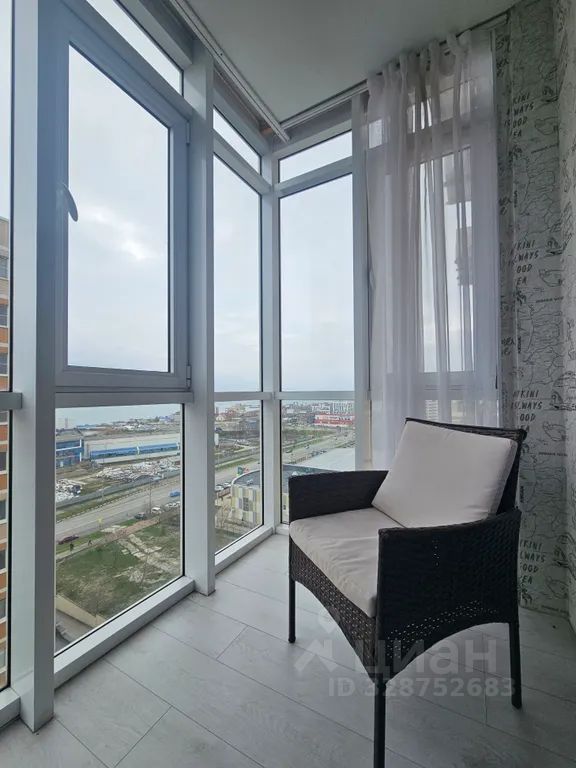Лоджия с витражным остеклением и потрясающим видом на море.