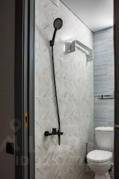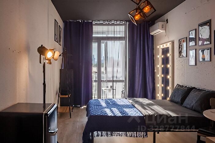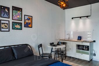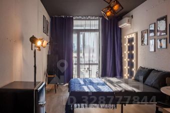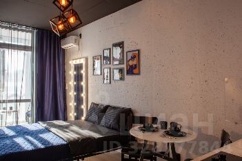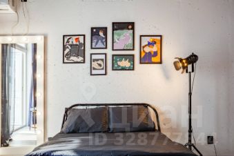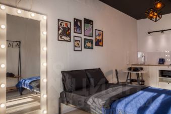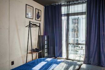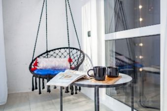В квартире: витражные окна и качели, кухонная зона, одна двуспальная кровать . Сан узел свой, но в общем коридоре.