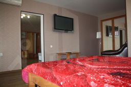 Уютный, просторный номер, состоящий из двух комнат. В номере двуспальная кровать.