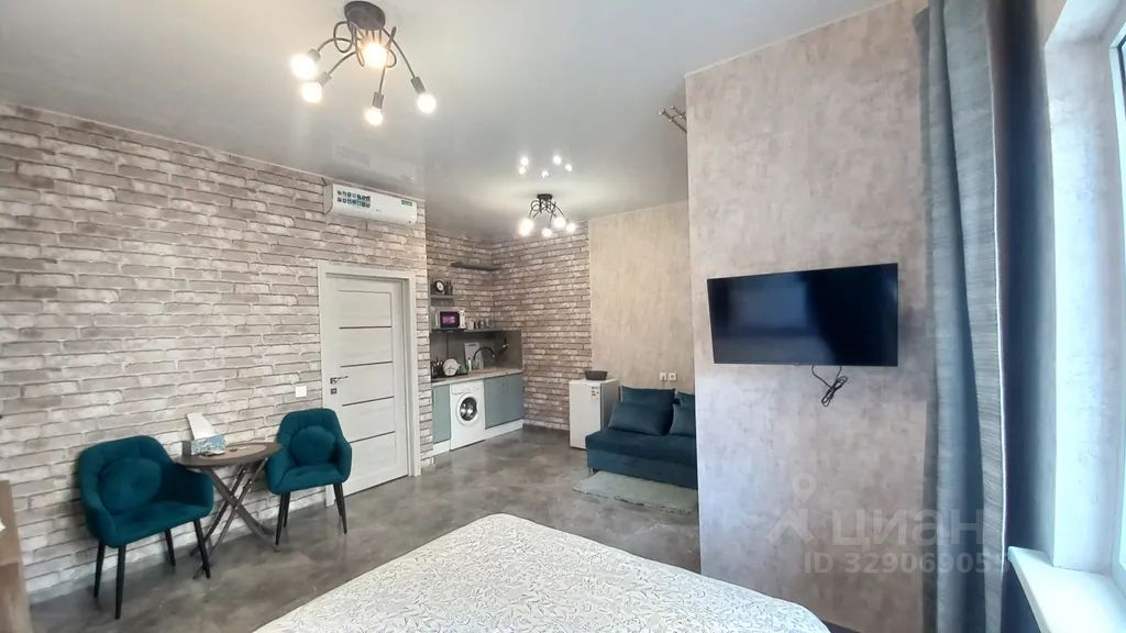 Новая студия. Отлично подойдет для одного гостя, пары. Возможно размещение до четырех гостей.