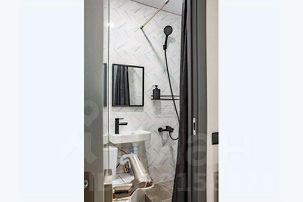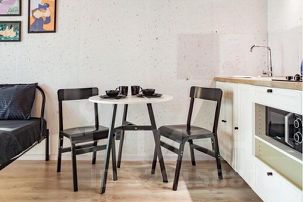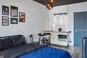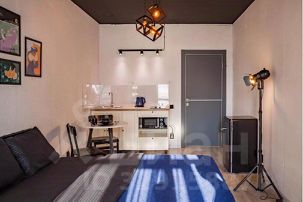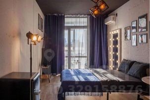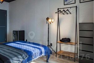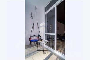 В квартире: витражные окна и качели, кухонная зона, одна двуспальная кровать . Сан узел свой, но в общем коридоре.