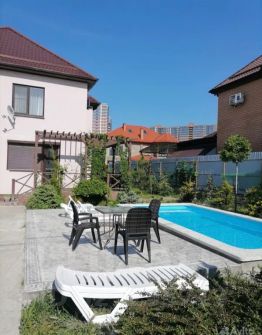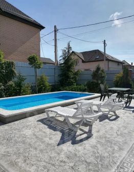 На территории дома есть всесезонный бассейн с подогревом, террасы для отдыха со столами и стульями, мангал и тд.