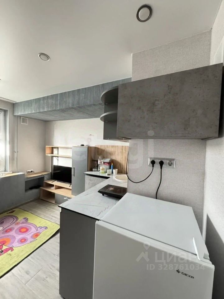 В помещении есть всё необходимое: холодильник, индукционная плита на одну конфорку, микроволновка, чайник и стиральная машина. Санузел совмещённый с душевой кабиной 70х70 см. Вода подаётся бесперебойно.