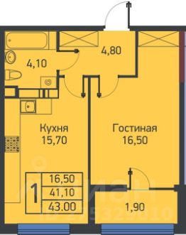 Квартира расположена на 12-ом этаже, вид на море, витражное остекление. Общая площадь 43 кв.м, жилая 16.5 кв.м., кухня 15.7кв.м., санузел 4.1. кв.м., высота потолков 2,85 м.
