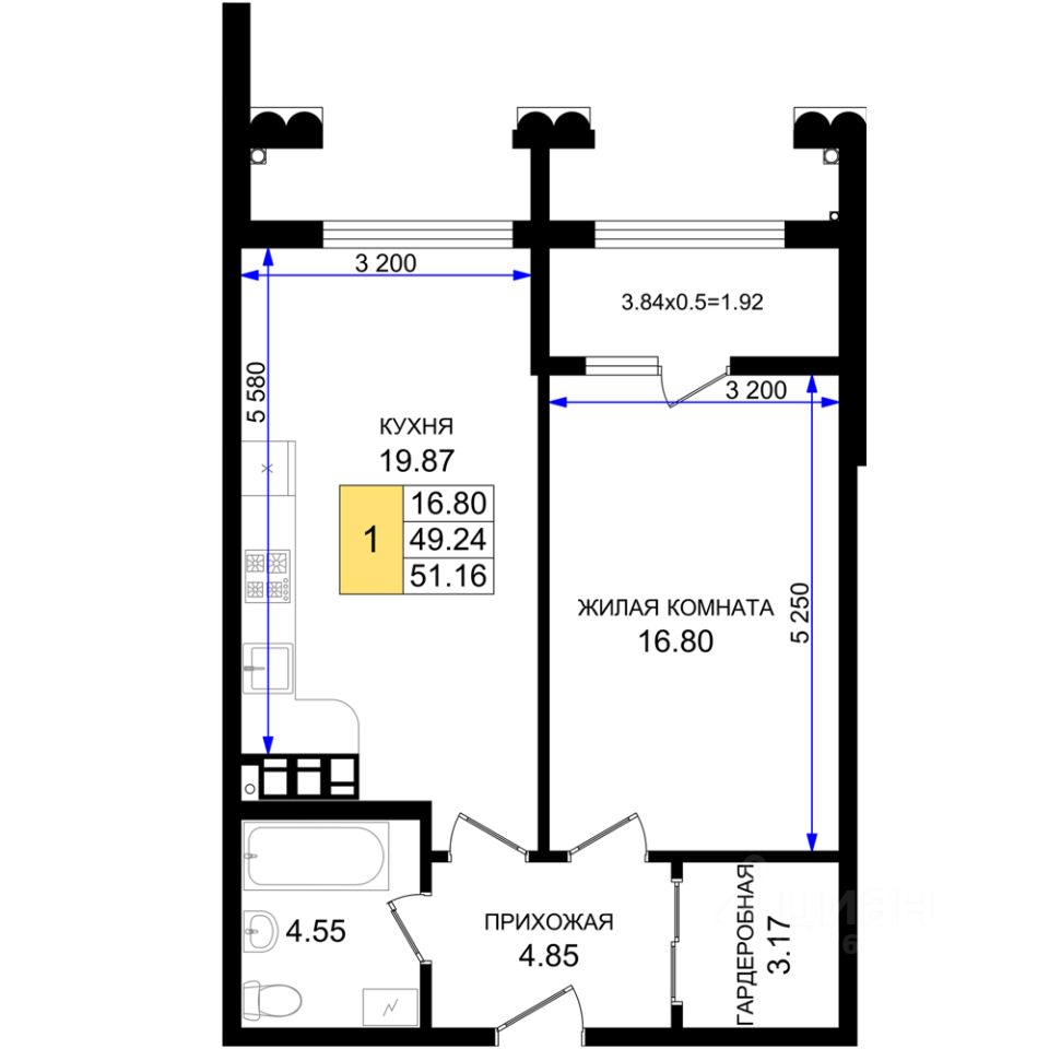 Продаётся 1-комнатная квартира в строящемся доме (Корпус А5), срок сдачи: IV-кв. 2026, общей площадью 51.16 кв.м., на 3 этаже. Обособленный тихий жилой микрорайон класса комфорт-плюс в Южном районе города Новороссийска, расположенный вдоль новой автодороги "Южный обход". Рядом находится крупный транспортный узел. Пересечение Мысхакского шоссе и автодороги Южный обход. Застройщиком будет запущен бесплатный электротранспорт до пляжа в с. Мысхако.