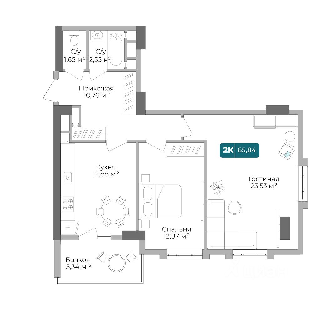 Продаётся 2-комнатная квартира в строящемся доме (Литер 2), срок сдачи: IV-кв. 2025, общей площадью 65.84 кв.м., на 12 этаже. Новый жилой комплекс "Золотой берег 2" от застройщика "ССК" расположен по адресу: Россия, Краснодарский край, Новороссийск, проспект Дзержинского