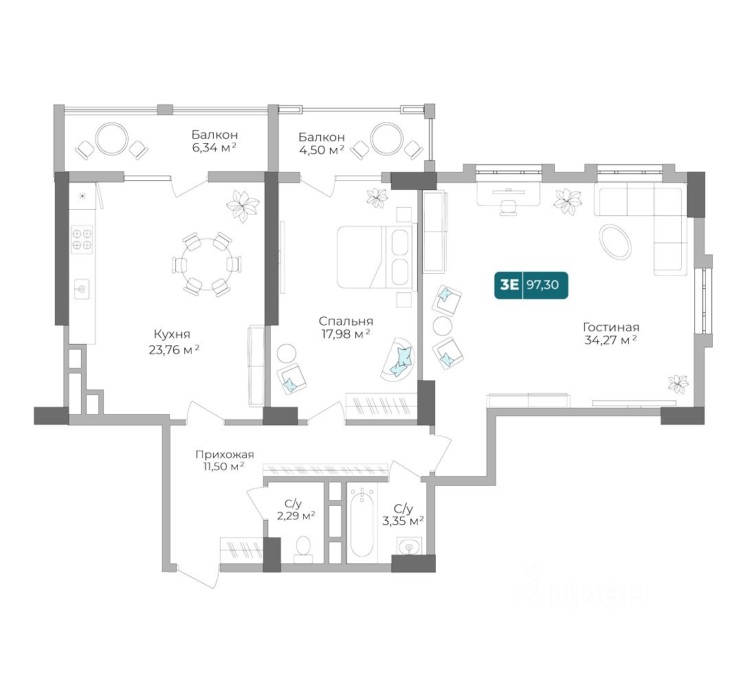 Продаётся 2-комнатная квартира в строящемся доме (Литер 3), срок сдачи: IV-кв. 2025, общей площадью 97.05 кв.м., на 10 этаже. Новый жилой комплекс "Золотой берег 2" от застройщика "ССК" расположен по адресу: Россия, Краснодарский край, Новороссийск, проспект Дзержинского