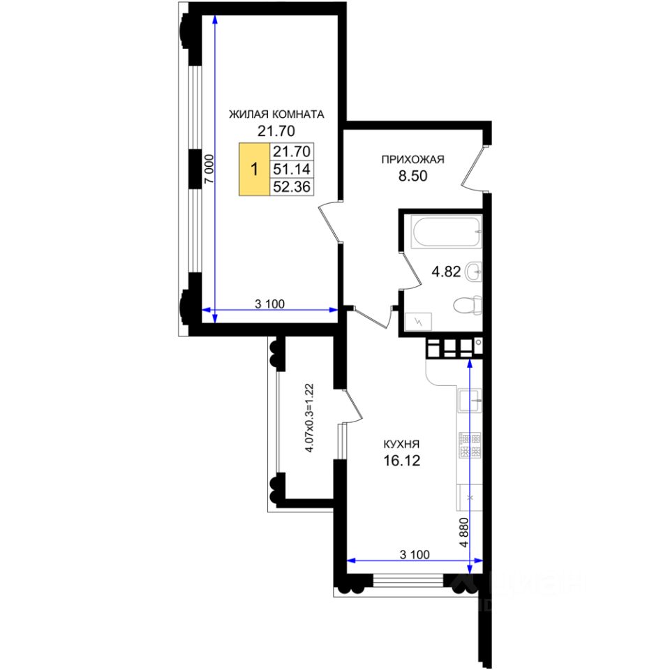 Общая площадь52,36 м²