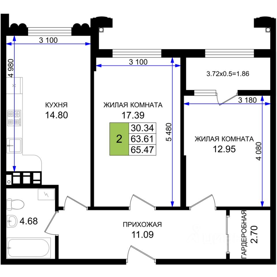 Общая площадь65,47 м²