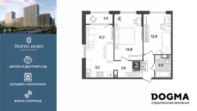 Срок сдачи: 4 кв. 2026, общей площадью 57.5 кв.м., на 13 этаже.
