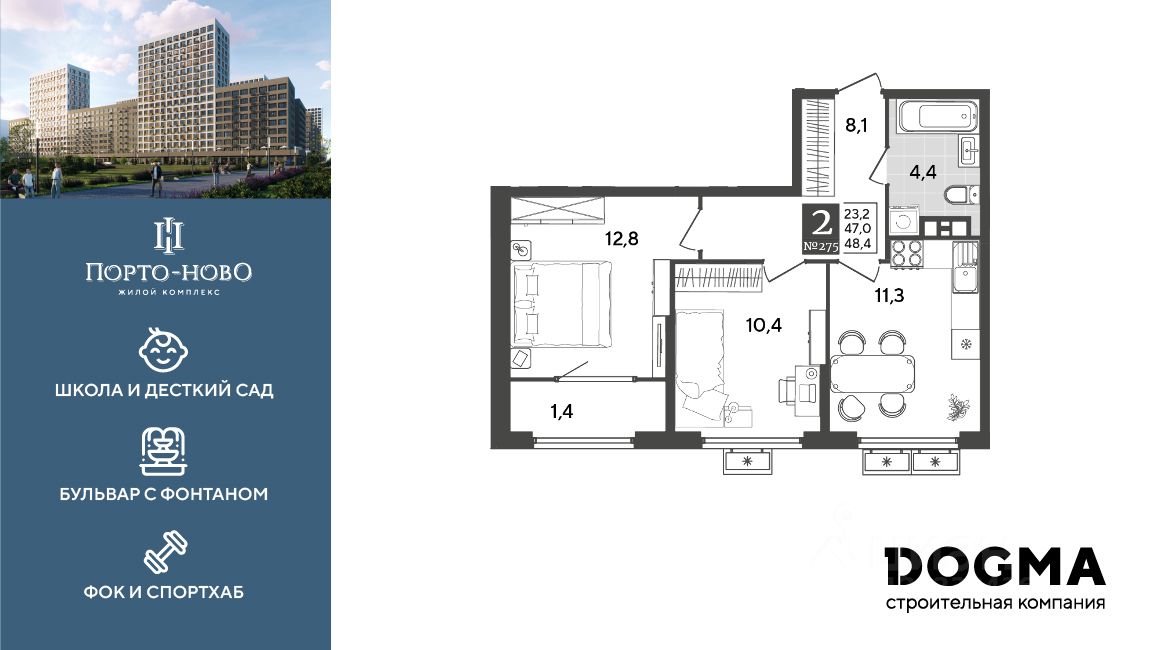 ЖК "Порто-Ново" — новый порт для комфортной жизни. 10 домов переменной этажности с террасами на десятом этаже. Дворы в виде "портов" со своей инфраструктурой: детские и спортивные зоны легко уживаются с зонами отдыха для взрослых, а прогулочный бульвар с фонтаном придаёт кварталу ощущение полноты и гармонии жизни. Школа на 1100 мест, детский сад на 260 мест и физкультурно-оздоровительный комплекс дополняют инфраструктуру всего микрорайона и создают причал для новых возможностей.