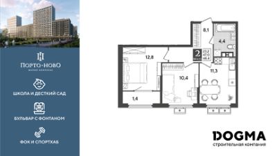 Срок сдачи: 4 кв. 2026, общей площадью 48.4 кв.м., на 8 этаже.