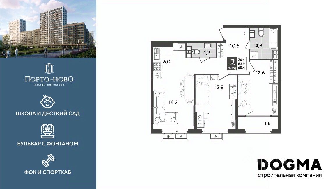 ЖК "Порто-Ново" — новый порт для комфортной жизни. 10 домов переменной этажности с террасами на десятом этаже. Дворы в виде "портов" со своей инфраструктурой: детские и спортивные зоны легко уживаются с зонами отдыха для взрослых, а прогулочный бульвар с фонтаном придаёт кварталу ощущение полноты и гармонии жизни. Школа на 1100 мест, детский сад на 260 мест и физкультурно-оздоровительный комплекс дополняют инфраструктуру всего микрорайона и создают причал для новых возможностей.
