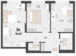 Общая площадь56,4 м²
