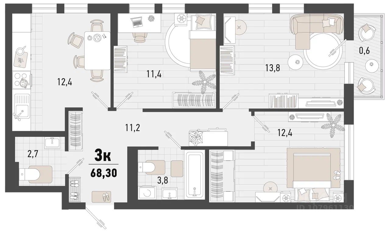 Общая площадь68,3 м²