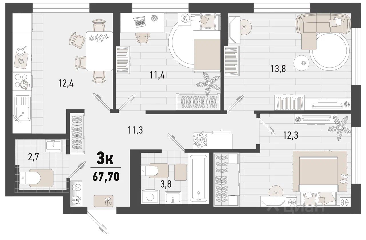 Общая площадь67,7 м²