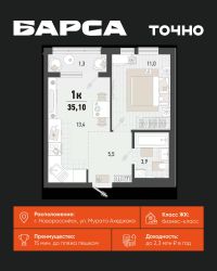 Продается 1-комн. квартира, 35,1 м²