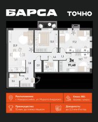 Общая площадь91,4 м²