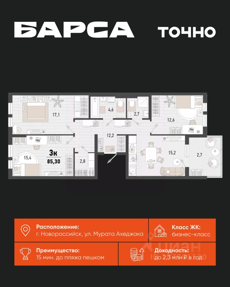 Жилой комплекс "Барса" расположился в самом живописном Южном районе Новороссийска, всего в 15 минутах ходьбы от пляжа "Алексино". Море будет видно даже из окон невысоких этажей. Проект объединяет просторные квартиры с панорамными окнами, продуманные зоны отдыха и площадки для спорта, прогулочный бульвар, беседки и уникальные арт-объекты. В жилом комплексе запланированы детский сад на 380 мест и школа на 1 750 мест. Больше не нужно выбирать между жизнью на курорте и в мегаполисе. "Барса" — новый проект для безупречной жизни людей на побережье!