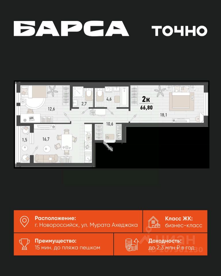 Жилой комплекс "Барса" расположился в самом живописном Южном районе Новороссийска, всего в 15 минутах ходьбы от пляжа "Алексино". Море будет видно даже из окон невысоких этажей. Проект объединяет просторные квартиры с панорамными окнами, продуманные зоны отдыха и площадки для спорта, прогулочный бульвар, беседки и уникальные арт-объекты. В жилом комплексе запланированы детский сад на 380 мест и школа на 1 750 мест. Больше не нужно выбирать между жизнью на курорте и в мегаполисе. "Барса" — новый проект для безупречной жизни людей на побережье!