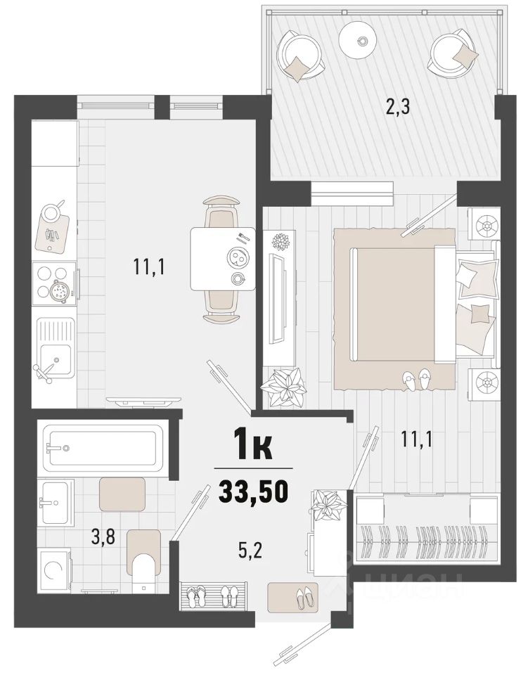 Общая площадь33,5 м²