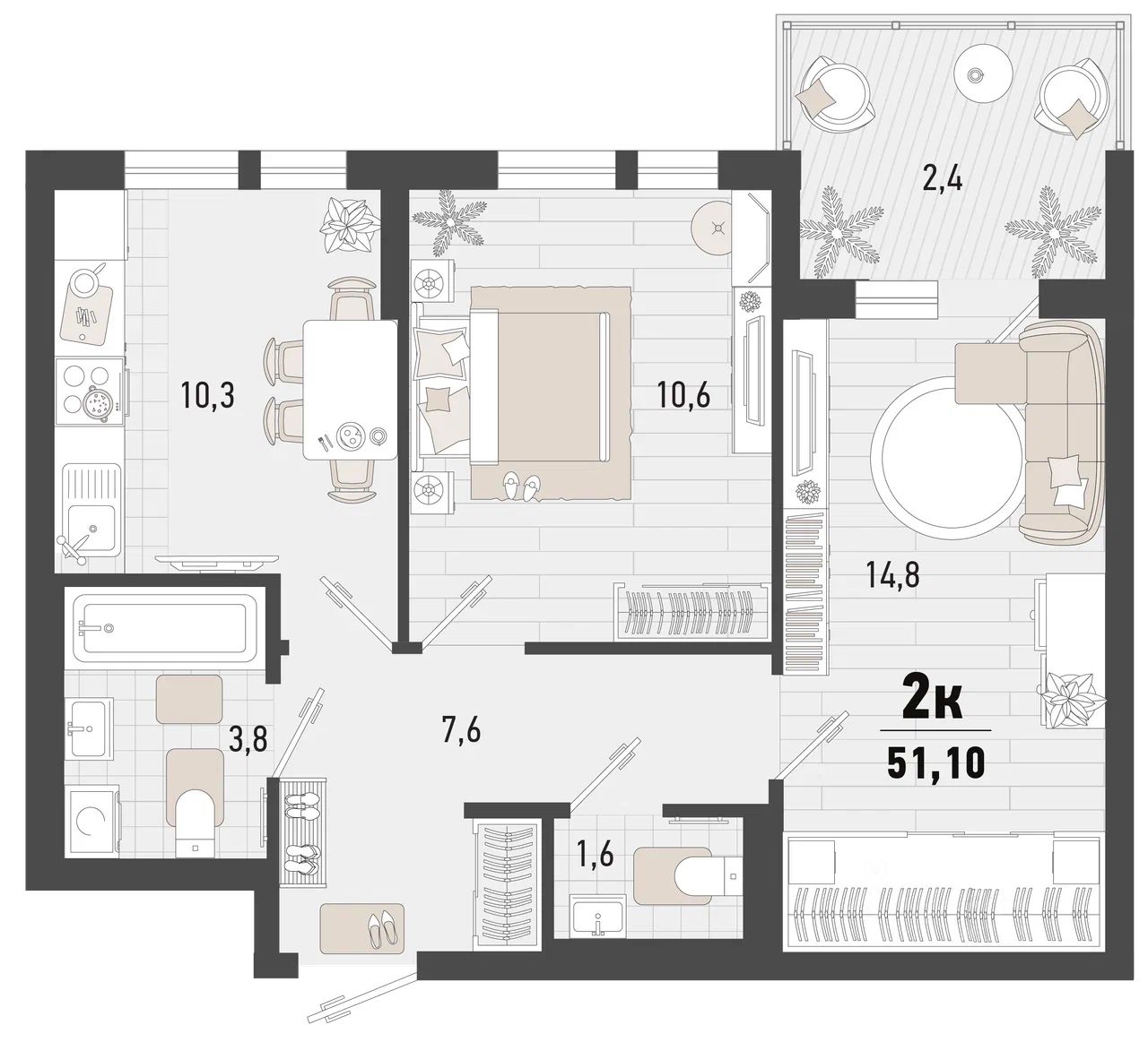 Общая площадь51,1 м²
