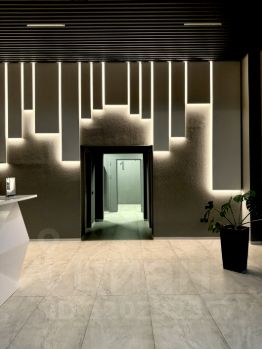 На полу паркет. Высокие двери. Плинтус с подсветкой.