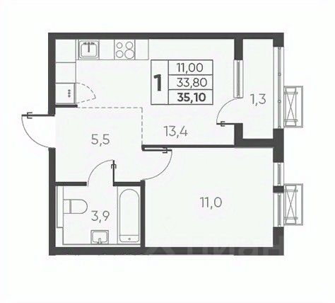 Общая площадь35,1 м²