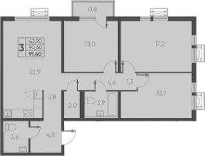 Продается 3-комн. квартира, 91,4 м²