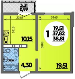 Общая площадь38,81 м²