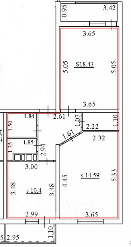 2-две изолированные комнаты - распашонка (14,59+18,43) кв.м.