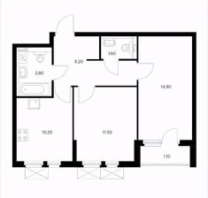 -Функциональная планировка: кухня 10,2 м2, жилые комнаты 14,8 + 11,5 м2; 2 санузла.